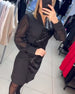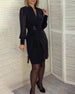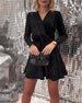 SPECIFIKATIONER Stil: Chic Materiale: 95% polyester, 5% spandex Kjoletype: Tunika Kjolelængde: Knælængde Halsudskæring: V-udskæring Mønstertype: Pailletter, Ensfarvet Ærmetype: Almindeligt ærme Ærmelængde: Langærmet Detaljer: Snøre op Pasform: Almindelig Sæson/årstid: Efterår, Vinter Lejlighed: Daglig, Ferie Pakken inkluderer: 1 x Kjole ST...