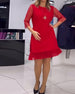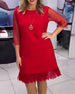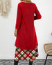 Rød fløjlskjole med falsk 2-i-1 ternet underlag