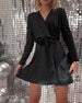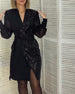 Lace-Up Kjole Sexy Wrap Bryst Paljetter Fløjl
