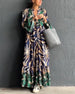 SPECIFIKATIONER Stil: Afslappet, Ferie, Chic Materiale: 5% Spandex, 95% Polyester Kjoletype: A-linje Kjolelængde: Maxi Halsudskæring: V-udskæring Mønstertype: Tryk Ærmetype: Vidærmet Ærmelængde: Langærmet Pasform: Løs Sæson/årstid: Forår, Sommer, Efterår Lejlighed: Daglig, Ferie Pakken inkluderer: 1 x Kjole STØRRELSESTABEL (cm) ...