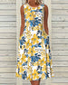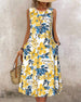 Afslappet ærmeløs sommerkjole med bladmotiv