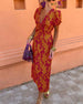 SPECIFIKATIONER Stil: Ferie Materiale: 100% Polyester Kjoletype: A-linje Kjolelængde: Maxi Halsudskæring: V-udskæring Mønstertype: Tryk Ærmetype: Flænge-ærmer Ærmelængde: Kortærmet Detaljer: Flænge Pasform: Almindelig Sæson/årstid: Sommer Lejlighed: Ferie Pakken inkluderer: 1 x Kjole STØRRELSESTABEL (cm) Størrelse Buste Længde S...