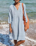 SPECIFIKATIONER Stil: Afslappet, Ferie Materiale: 65%Bomuld, 35% Polyester Kjoletype: Shift-kjole Kjolelængde: Knælængde Halsudskæring: V-udskæring Mønstertype: Ensfarvet Ærmetype: Almindeligt ærme Ærmelængde: Trekvartærmet Detaljer: Lomme, Snøre Pasform: Almindelig Sæson/årstid: Forår, Sommer, Efterår Lejlighed: Daglig, Ferie Pakken inkludere...