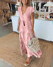 SPECIFIKATIONER Stil: Afslappet, Ferie Materiale: Chiffon,Polyester Kjoletype: A-linje Kjolelængde: Maxi Halsudskæring: V-udskæring Mønstertype: Ensfarvet Ærmetype: Drop Shoulder Detaljer: Rynket Pasform: Almindelig Sæson/årstid: Forår, Sommer Lejlighed: Daglig, Ferie Pakken inkluderer: 1 x Kjole STØRRELSESTABEL (cm) Størrelse ...