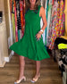 Slim fit kjole med dyb V-udskæring og pufærmer