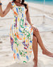 SPECIFIKATIONER Stil: Ferie Materiale: 100% Polyester Kjoletype: A-linje Kjolelængde: Maxi Halsudskæring: Rund hals Mønstertype: Blomster-(garment type) Ærmelængde: Uden ærmer Detaljer: Høj åbning Pasform: Almindelig Sæson/årstid: Sommer Lejlighed: Ferie Pakken inkluderer: 1 x Kjole STØRRELSESTABEL (cm) Størrelse Buste Længde S...