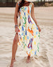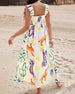 Afslappet lang kjole uden ærmer med blomstermotiv