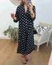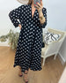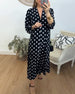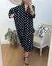 SPECIFIKATIONER Stil: Afslappet, Ferie Materiale: Bomuldsblanding Kjoletype: Shift-kjole Kjolelængde: Midi Halsudskæring: V-udskæring Mønstertype: Prikket Ærmetype: Almindeligt ærme Ærmelængde: Langærmet Pasform: Løs Sæson/årstid: Forår, Sommer Lejlighed: Daglig, Ferie Pakken inkluderer: 1 x Kjole STØRRELSESTABEL (cm) Størrelse Buste Læ...