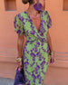 SPECIFIKATIONER Stil: Elegant Materiale: Bomuldsblanding Kjoletype: A-linje Kjolelængde: Maxi Halsudskæring: V-udskæring Mønstertype: Blade Ærmetype: Puf-ærmer Ærmelængde: Kortærmet Detaljer: Rynket Pasform: Almindelig Sæson/årstid: Forår, Sommer Lejlighed: Daglig, Ferie Pakken inkluderer: 1 x Kjole STØRRELSESTABEL (cm) Størrelse Buste Længd...
