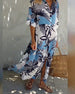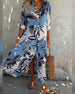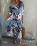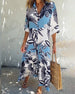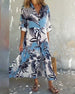 SPECIFIKATIONER Stil: Afslappet, Ferie Materiale: 5% Spandex, 95% Polyester Kjoletype: A-linje Kjolelængde: Maxi Halsudskæring: V-udskæring Mønstertype: Tryk Ærmetype: Almindeligt ærme Ærmelængde: Trekvartærmet Detaljer: Knapper, Snøre Pasform: Almindelig Sæson/årstid: Forår, Sommer Lejlighed: Daglig, Ferie Pakken inkluderer: 1 x Kjole STØ...