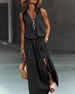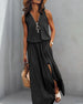 SPECIFIKATIONER Stil: Afslappet, Ferie Materiale: 95% polyester, 5% spandex Kjoletype: Tank Kjolelængde: Maxi Halsudskæring: V-udskæring Mønstertype: Ensfarvet Ærmelængde: Uden ærmer Detaljer: Flænge, Lynlås Pasform: Almindelig Sæson/årstid: Forår, Sommer, Efterår Lejlighed: Daglig, Ferie Pakken inkluderer: 1 x Kjole STØRRELSESTABEL (cm) ...