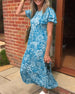 SPECIFIKATIONER Stil: Afslappet Materiale: Bomuldsblanding Kjoletype: A-linje Kjolelængde: Over knæet Halsudskæring: V-udskæring Mønstertype: Blomster-(garment type) Ærmetype: Pjuskærmer Ærmelængde: Kortærmet Detaljer: Pjusket Pasform: Almindelig Sæson/årstid: Sommer Lejlighed: Daglig, Ferie Pakken inkluderer: 1 x Kjole STØRRELSESTABEL (cm...