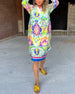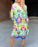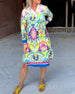 Lang farverig kjole i afslappet pasform med vide ærmer