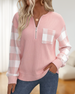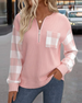Sweatshirt Med Halvzip-Design, Rutenmønster Og Patchworkdetalj
