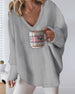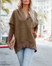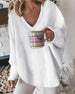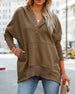 Sweatshirt afslappet v-hals hætte ensfarvet løs