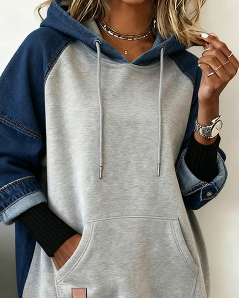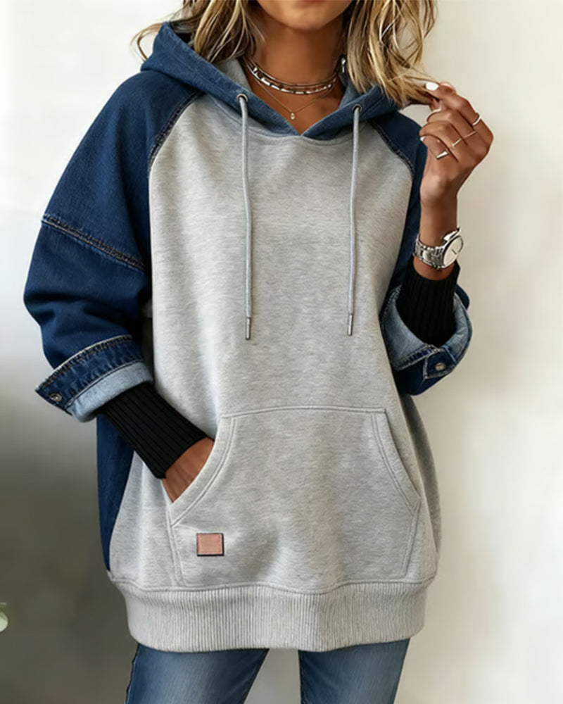 Sweatshirt afslappet hætte farveblok printet