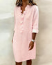 SPECIFIKATIONER Stil: Afslappet Materiale: Bomuldsblanding Kjoletype: Shift-kjole Kjolelængde: Over knæet Halsudskæring: Revers Mønstertype: Ensfarvet Ærmetype: Almindeligt ærme Ærmelængde: Langærmet Pasform: Almindelig Sæson/årstid: Efterår,Vinter Lejlighed: Daglig Pakken inkluderer: 1 x Kjole STØRRELSESTABEL (cm) Størrelse Buste Længde S...