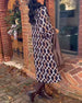 Moderne Trykt Kjole Med Rund Halsudskæring Og Lange Ærmer