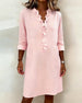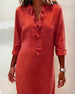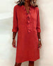 SPECIFIKATIONER Stil: Afslappet Materiale: 20% Hør, 80% Bomuld Kjoletype: Shift-kjole Kjolelængde: Knælængde Halsudskæring: V-udskæring Mønstertype: Ensfarvet Ærmetype: Almindeligt ærme Ærmelængde: Langærmet Detaljer: Pjusket Pasform: Almindelig Sæson/årstid: Forår,Sommer Lejlighed: Daglig Pakken inkluderer: 1 x Kjole STØRRELSESTABEL (cm)...