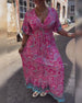 Lang mønstret feriekjole med V-hals