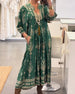 SPECIFIKATIONER Stil: Afslappet Materiale: Bomuldsblanding Kjoletype: Shift-kjole Kjolelængde: Maxi Halsudskæring: V-udskæring Mønstertype: Tryk Ærmelængde: Trekvartærmet Detaljer: Lomme,Rynket Pasform: Almindelig Sæson/årstid: Forår,Efterår,Vinter Lejlighed: Daglig Pakken inkluderer: 1 x Kjole STØRRELSESTABEL (cm) Størrelse Buste Længde S...