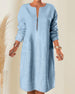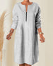 SPECIFIKATIONER Stil: Afslappet Materiale: Bomuldsblanding Kjoletype: Shift-kjole Halsudskæring: V-udskæring Ærmetype: Almindeligt ærme Ærmelængde: Langærmet Pasform: Almindelig Sæson/årstid: Efterår,Vinter Lejlighed: Daglig Pakken inkluderer: 1 x Kjole STØRRELSESTABEL (cm) Størrelse Buste Længde S 97 100 M 101 101.5 L 105 103 XL 111...