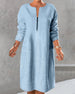 SPECIFIKATIONER Stil: Afslappet Materiale: Bomuldsblanding Kjoletype: Shift-kjole Kjolelængde: Over knæet Halsudskæring: Rund hals Mønstertype: Ensfarvet Ærmetype: Almindeligt ærme Ærmelængde: Langærmet Detaljer: Lomme,Knapper Pasform: Almindelig Sæson/årstid: Efterår,Vinter Lejlighed: Daglig Pakken inkluderer: 1 x Kjole STØRRELSESTABEL (cm) ...