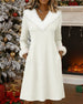 SPECIFIKATIONER Stil: Afslappet Materiale: Bomuldsblanding Kjoletype: A-linje Kjolelængde: Over knæet Halsudskæring: V-udskæring Mønstertype: Ensfarvet Ærmetype: Almindeligt ærme Ærmelængde: Langærmet Detaljer: Snøre Pasform: Almindelig Sæson/årstid: Efterår,Vinter Lejlighed: Daglig Pakken inkluderer: 1 x Kjole STØRRELSESTABEL (cm) Stør...