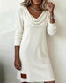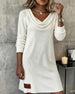 SPECIFIKATIONER Stil: Afslappet Materiale: Bomuldsblanding Kjoletype: A-linje Kjolelængde: Knælængde Halsudskæring: Draperet Krave Mønstertype: Ensfarvet Ærmetype: Almindeligt ærme Ærmelængde: Langærmet Detaljer: Snøre Pasform: Almindelig Sæson/årstid: Efterår,Vinter Lejlighed: Daglig Pakken inkluderer: 1 x Kjole STØRRELSESTABEL (cm) Størrel...
