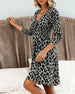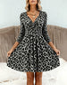 SPECIFIKATIONER Stil: Afslappet Materiale: Bomuldsblanding Kjoletype: A-linje Kjolelængde: Knælængde Halsudskæring: V-udskæring Mønstertype: Leopard-print Ærmetype: Almindeligt ærme Ærmelængde: Langærmet Detaljer: Rynket Pasform: Almindelig Sæson/årstid: Efterår,Vinter Lejlighed: Daglig Pakken inkluderer: 1 x Kjole STØRRELSESTABEL (cm) Størr...