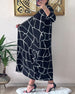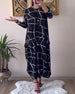 Moderne Trykt Kjole Med Rund Halsudskæring Og Lange Ærmer