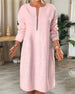 SPECIFIKATIONER Stil: Afslappet Materiale: Bomuldsblanding Kjoletype: Shift-kjole Kjolelængde: Knælængde Halsudskæring: Revers Mønstertype: Ensfarvet Ærmetype: Almindeligt ærme Ærmelængde: Langærmet Detaljer: Lomme,Lynlås Pasform: Almindelig Sæson/årstid: Efterår,Vinter Lejlighed: Daglig Pakken inkluderer: 1 x Kjole STØRRELSESTABEL (cm) Stør...