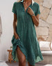 SPECIFIKATIONER Stil: Afslappet Materiale: Bomuldsblanding Kjoletype: Shift-kjole Kjolelængde: Maxi Halsudskæring: V-udskæring Mønstertype: Tie Dye Ærmelængde: Kortærmet Detaljer: Lomme Pasform: Almindelig Sæson/årstid: Forår,Sommer Lejlighed: Daglig Pakken inkluderer: 1 x Kjole STØRRELSESTABEL (cm) Størrelse Buste Længde S 97 132 M 101 ...