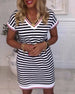 SPECIFIKATIONER Stil: Afslappet Materiale: Bomuldsblanding Kjoletype: Shift-kjole Kjolelængde: Over knæet Halsudskæring: V-udskæring Mønstertype: Stribet,Farveblok Ærmetype: Almindeligt ærme Ærmelængde: Kortærmet Pasform: Almindelig Sæson/årstid: Forår,Sommer Lejlighed: Daglig Pakken inkluderer: 1 x Kjole STØRRELSESTABEL (cm) Størrelse B...