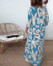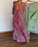 Elegant lang tie-dye kjole med ballonærmer og taljesnøre
