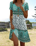 SPECIFIKATIONER Stil: Afslappet, Ferie Materiale: 3% Spandex,97% Polyester Kjoletype: Shift-kjole Kjolelængde: Midi Halsudskæring: V-udskæring Mønstertype: Tryk Ærmetype: Almindeligt ærme Ærmelængde: Halve ærmer Detaljer: Flænge Pasform: Almindelig Sæson/årstid: Forår, Sommer, Efterår Lejlighed: Daglig, Ferie Pakken inkluderer: 1 x Kjole S...