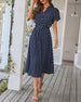 SPECIFIKATIONER Stil: Afslappet Materiale: Bomuldsblanding Kjoletype: A-linje Kjolelængde: Midi Halsudskæring: V-udskæring Mønstertype: Prikket Ærmetype: Almindeligt ærme Ærmelængde: Kortærmet Detaljer: Snøre op, Knapper Pasform: Almindelig Sæson/årstid: Forår, Sommer Lejlighed: Daglig Pakken inkluderer: 1 x Kjole STØRRELSESTABEL (cm) S...
