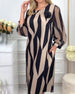 SPECIFIKATIONER Stil: Afslappet Materiale: 5% Spandex, 95% Polyester Kjoletype: Shift-kjole Kjolelængde: Midi Halsudskæring: V-udskæring, Revers Mønstertype: Tryk Ærmetype: Almindeligt ærme Ærmelængde: Langærmet Detaljer: Flænge Pasform: Løs Sæson/årstid: Forår, Sommer Lejlighed: Daglig Pakken inkluderer: 1 x Kjole STØRRELSESTABEL (cm) ...