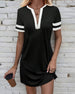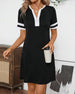 Kjole Halv Lynlås Farveblok Slim-Fit Kortærmet