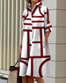 SPECIFIKATIONER Stil: Afslappet, Chic Materiale: Bomuldsblanding Kjoletype: Asymmetrisk Kjolelængde: Knælængde Halsudskæring: Kappehals Mønstertype: Farveblok, Tryk Ærmetype: Almindeligt ærme Ærmelængde: Langærmet Detaljer: Rynket Pasform: Almindelig Sæson/årstid: Efterår, Vinter Lejlighed: Daglig Pakken inkluderer: 1 x Kjole STØRRELSESTAB...