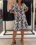 SPECIFIKATIONER Stil: Elegant, Fest Materiale: 100% Polyester Kjoletype: A-linje Kjolelængde: Maxi Halsudskæring: V-udskæring Mønstertype: Tryk Ærmetype: Puf-ærmer Ærmelængde: Halve ærmer Detaljer: Patchwork, Rynket Pasform: Almindelig Sæson/årstid: Forår, Sommer, Efterår Lejlighed: Daglig, Fest Pakken inkluderer: 1 x Kjole STØRRELSESTABEL...