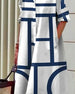 SPECIFIKATIONER Stil: Afslappet, Ferie Materiale: Bomuldsblanding Kjoletype: Shift-kjole Kjolelængde: Maxi Halsudskæring: V-udskæring Mønstertype: Geometrisk tryk Ærmetype: Almindeligt ærme Ærmelængde: Langærmet Detaljer: Patchwork, Flænge Pasform: Almindelig Sæson/årstid: Forår, Sommer, Efterår Lejlighed: Daglig, Ferie Pakken inkluderer: 1 x...