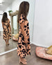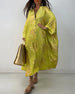 Langærmet oversized kjole med knapper og print