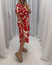 V-halset kjole med farverigt print