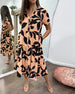 Elegant kortærmet kjole med V-udskæring og print