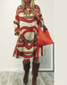 Lang farverig kjole i afslappet pasform med vide ærmer