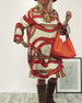 Rød fløjlskjole med falsk 2-i-1 ternet underlag