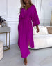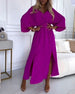 SPECIFIKATIONER Stil: Elegant Materiale: Bomuldsblanding Kjoletype: A-linje Kjolelængde: Maxi Halsudskæring: V-udskæring Mønstertype: Ensfarvet Ærmetype: Almindeligt ærme Ærmelængde: Langærmet Detaljer: Snøre op,Flænge Pasform: Almindelig Sæson/årstid: Forår,Sommer Lejlighed: Daglig Pakken inkluderer: 1 x Kjole STØRRELSESTABEL (cm) Stør...