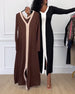SPECIFIKATIONER Stil: Elegant,Forretning/Business Materiale: 5% Spandex, 95% Polyester Kjoletype: Shift-kjole Kjolelængde: Maxi Halsudskæring: V-udskæring Mønstertype: Farveblok Ærmetype: Almindeligt ærme Ærmelængde: Langærmet Detaljer: Patchwork,Flænge Pasform: Almindelig Sæson/årstid: Forår,Sommer,Efterår Lejlighed: Daglig,Arbejde Pakken in...