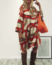 Vintage-mønstret maxikjole med skjortekrave og lommer